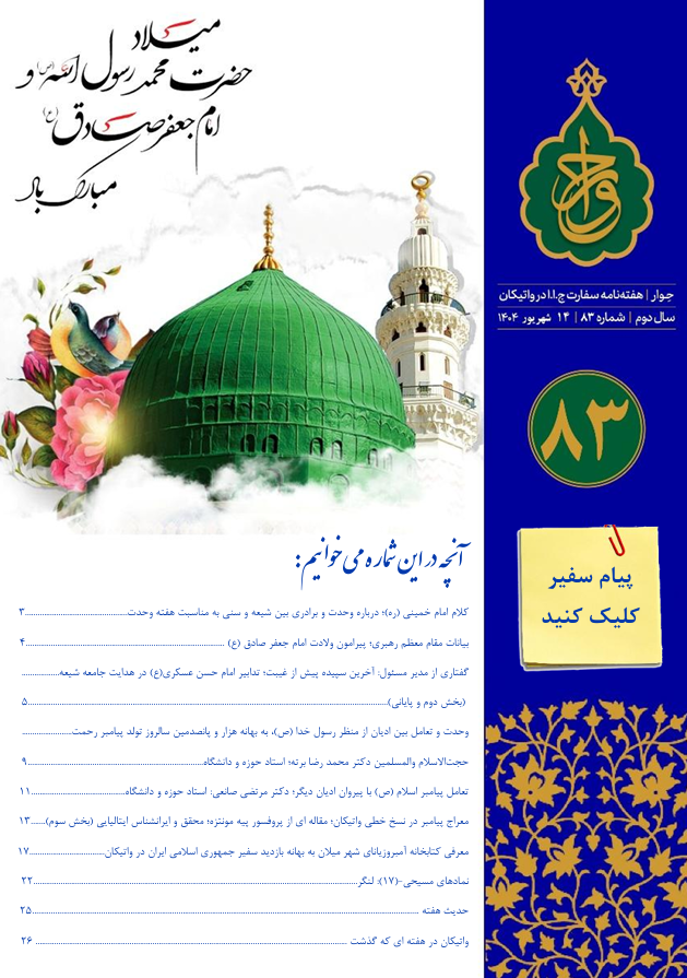 انتشار هشتاد و سومین شماره هفته نامه سفارت جمهوری اسلامی ایران در واتیکان