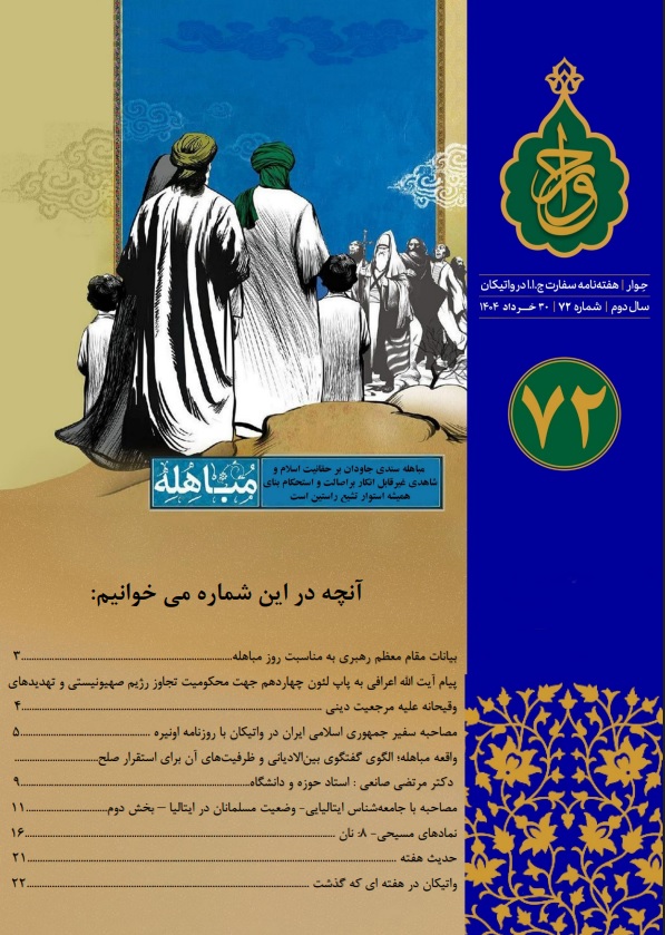 انتشار هفتادو دومین شماره هفته نامه سفارت جمهوری اسلامی ایران در واتیکان